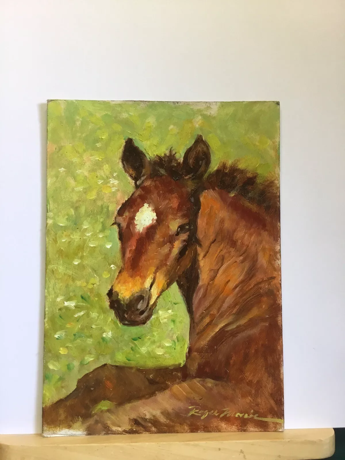 Original Oil Painting on Strawboard of a Foal. 25cm x 17.5cm. It is a very well executed piece of work capturing the real essence of this beautiful young horse.